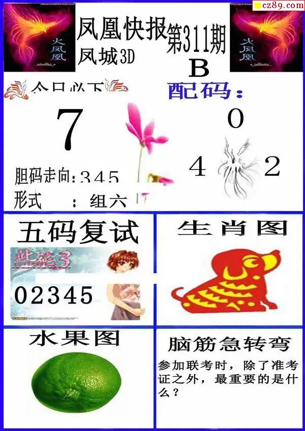 凤凰快报2025311期3d图谜