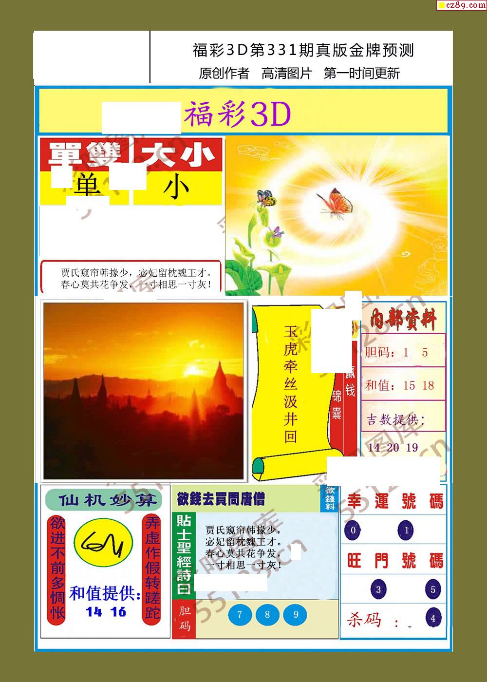 > 25年331期福彩3d真版金牌预测彩报