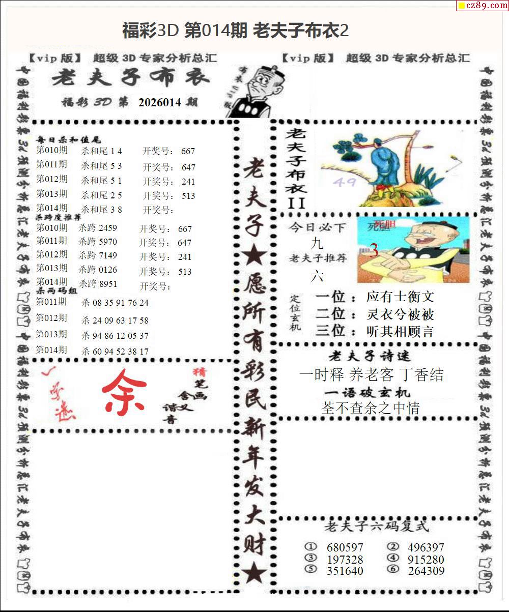 老夫子布衣2026014期3d图谜